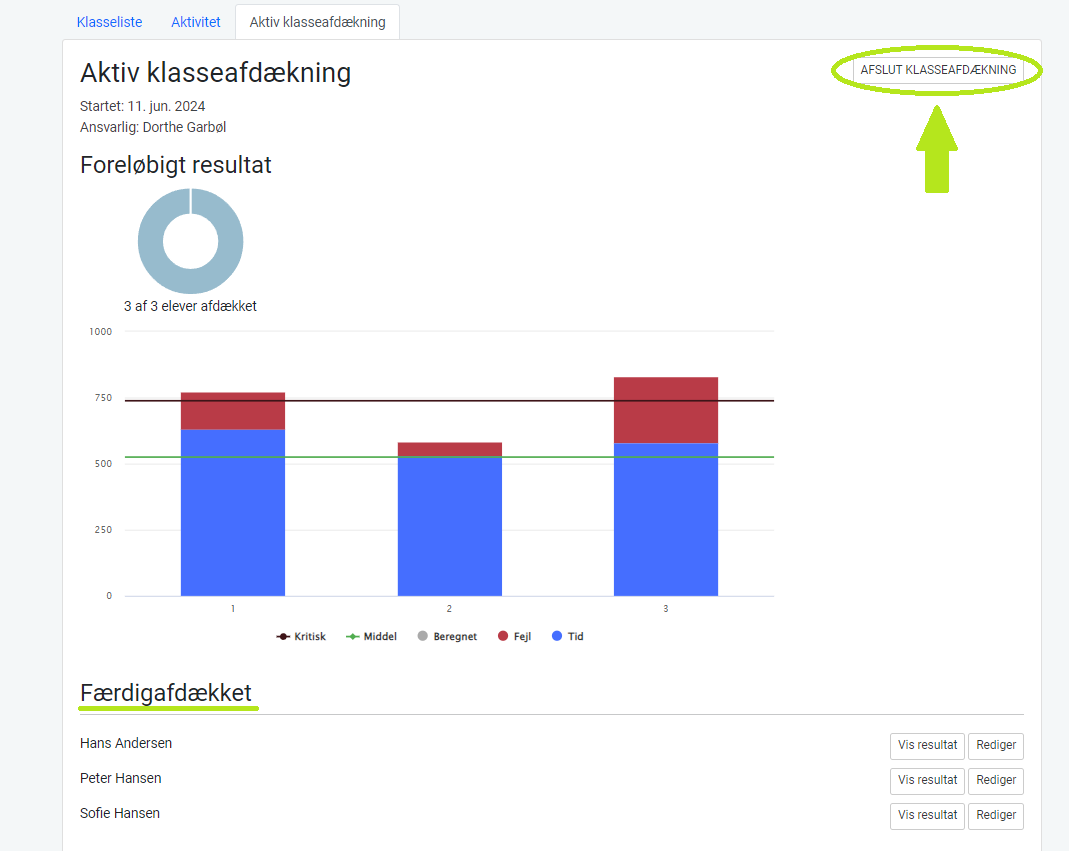 Du behøver ikke at afdække alle elever i en klasseafdækning. Hvis du vælger "Afslut klasseafdækning", vil de resterende elever ikke blive en del af den aktuelle afdækning.
