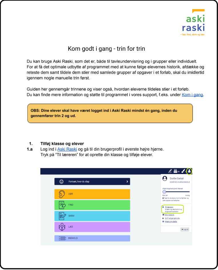 Den indeholder alt fra oprettelse og kobling af klasse og elever, over tildeling af stier i et forløb til, hvordan stierne vises for eleverne.